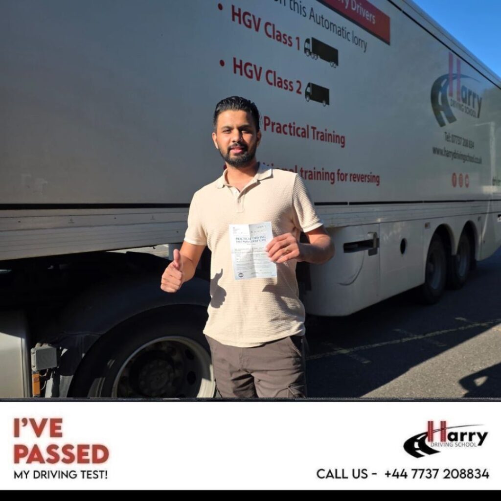 Mr. Gurpinder from Ilford Training Taken – Class1 Practical Test Status – Passed in first attempt